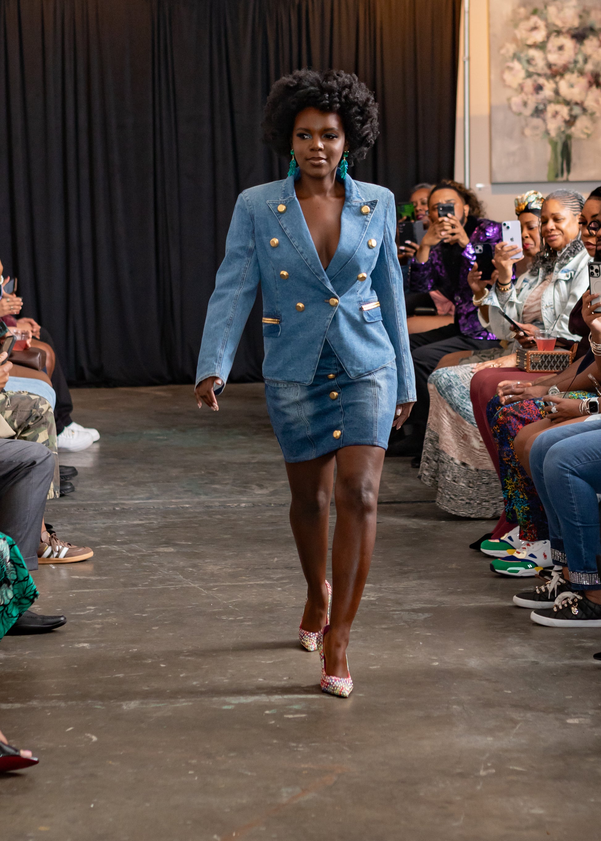 The Command Blazer Set is a bold expression of authority and femininity, crafted for women who lead with presence and precision. Designed in structured, high-quality denim, this tailored blazer and matching mini skirt set blends classic menswear influence with a modern, body-confident silhouette.